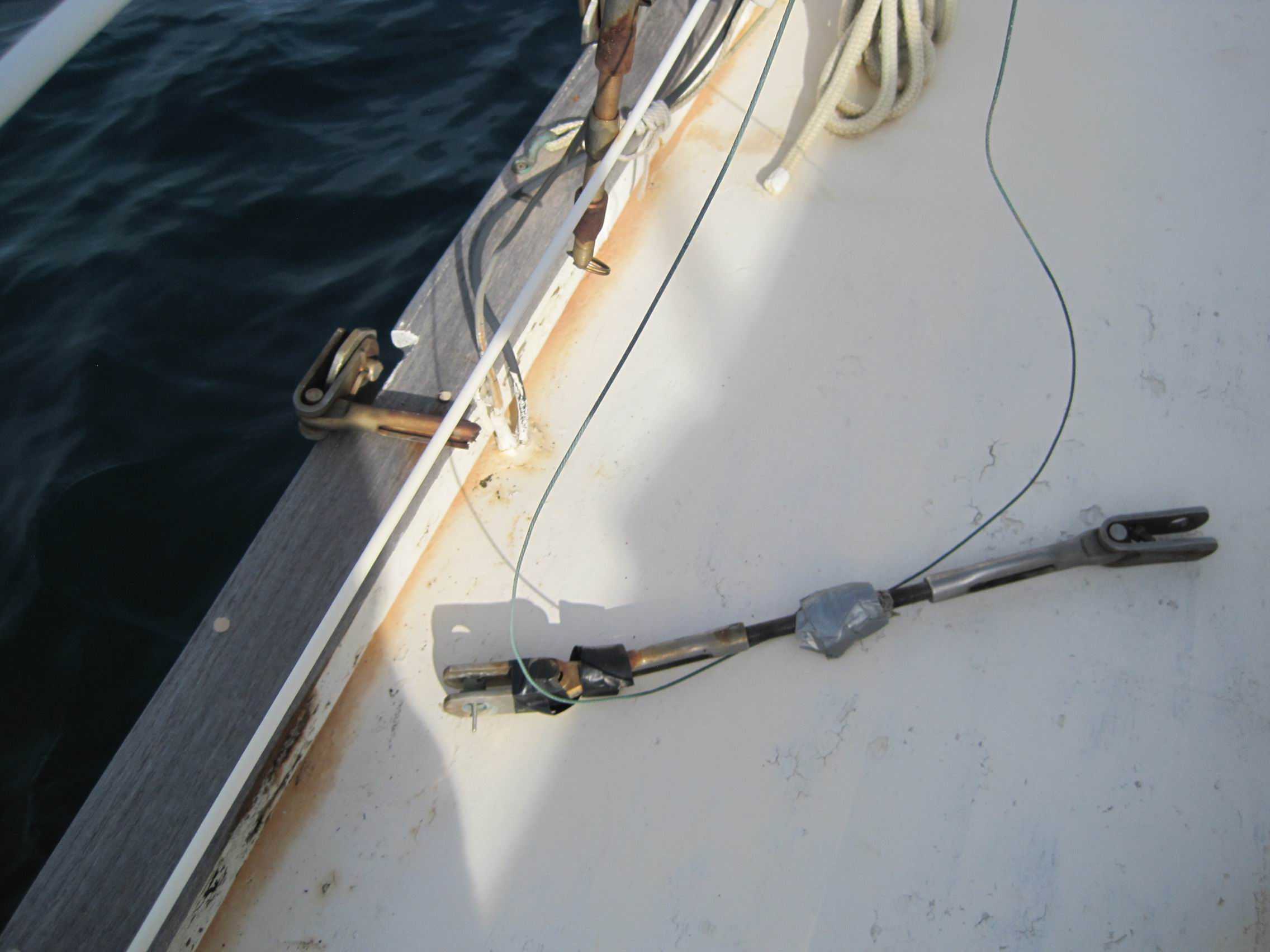 Alle Seile total verdreht und neben den Bugrollen und Kette schon gebrochen und hängt nur unnötig in verdrehten Seilen.