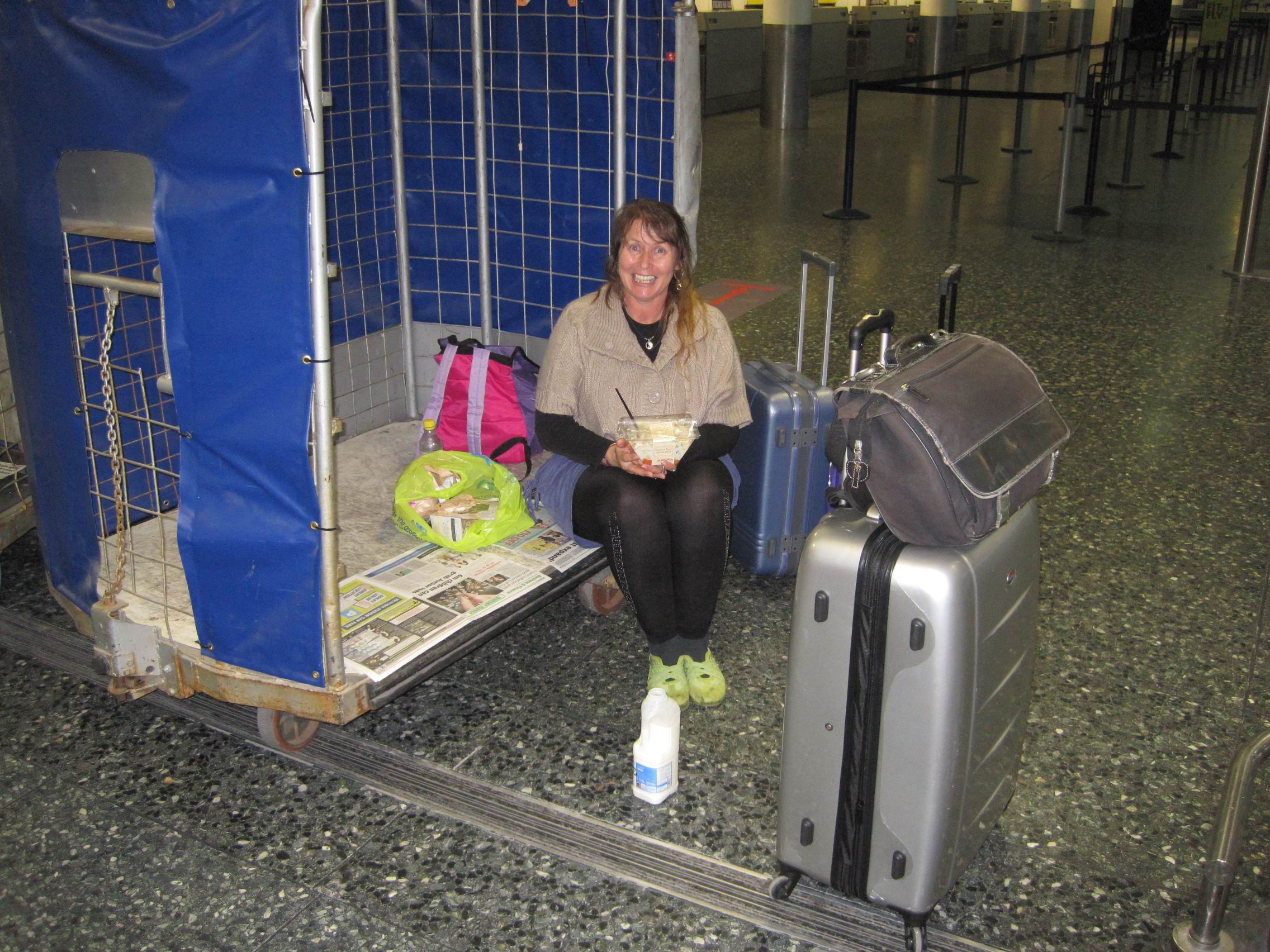 In Gatwick war keine einzige Bank noch Hotel frei und somit bezogen wir in einem Kofferwagen Quartier, nicht sehr gemütlich!